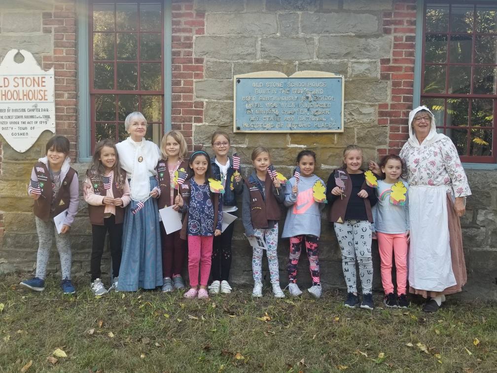 The stone schoolhouse was purchased at public auction in the 1930s from the Goshen School District after the schools became centralized and the single school was no longer needed. The members of the Minisink Chapter at that time decided that the schoolhouse could not be lost, so at the bid of $750.00 the women won the auction and became the proud owners of the Stone Schoolhouse. That school has stood the test of time, built during the early 1700s and sitting silently by, watching the passing of events since the time of the Revolutionary War. It is rumored that General George Washington stopped at the schoolhouse on his way from New Windsor, New York, to Morristown, New Jersey, during the War. The school was in constant use by the children of the owners and workers at the Borden farm from the time it was built.